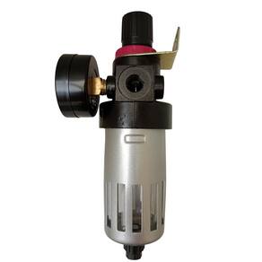 - Quais são os materiais utilizados na fabricação do filtro regulador de ar? O corpo do filtro regulador de ar é fabricado em alumínio fundido, a manopla e copo são em plástico, o manômetro em ferro e vidro, e o suporte em ferro. A vedação é feita em Buna-N.