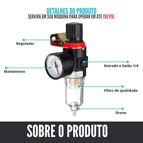 Filtro Regulador Ar Compressor 1/4 Para Pressure Tekna Motomil BJB Leia atentamente a descrição antes de comprar o produto - Produto de alta qualidade e durabilidade. - Aconselha-se um profissional para manutenção do seu equipamento. - Imagem meramente ilustrativas. ============================= Item: Lubrificador Filtro 1/4 Características: Quantidade: 1 peça Origem: AFR Saída: 1/4 Entrada: 1/4 Manômetro: Até 150 psi ou 10 Bar Utilização: Limpar fluxo de ar e deixar parcialmente seco. Pode ser em compressores, máquinas de pintura e outros usos industriais. ============================ Marca: Não Informado Ean: 7891686526389