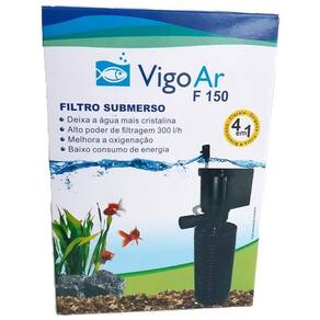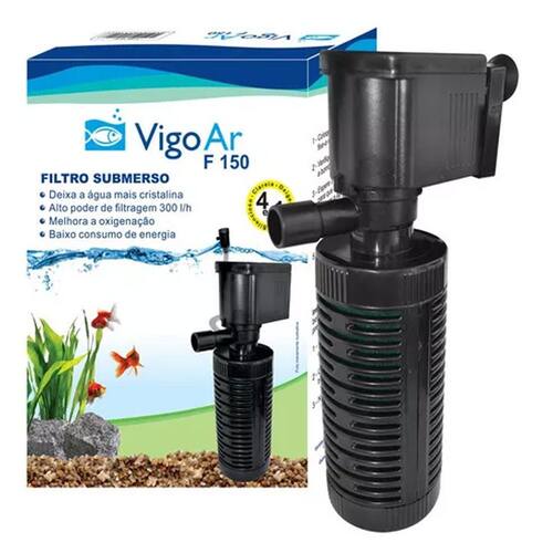 Filtro Interno com bomba F150 Vigoar para Aquário 4 em 1 desenvolvido para uso em aquário de água doce e marinha. Componentes elétricos com segurança e durabilidade. A bomba deve ser instalada submersa conforme instruções para evitar danos no sistema elétrico. Selada com resina atóxica, funcionando na água. Deve ser colocada na água antes de ser ligada.