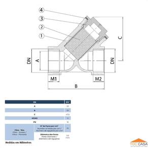 FILTRO TIPO Y INDUSTRIAL LATÃO FORJADO 3/4" TELA EM AÇO INOXIDÁVEL.