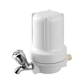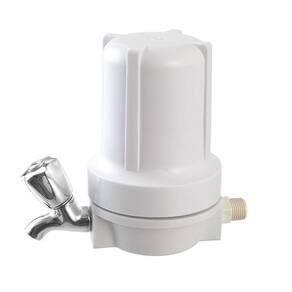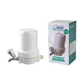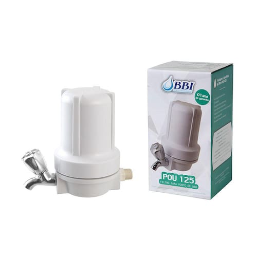 Filtro para torneira 5", com torneira de metal cromada inclusa. Aplicações e recomendações de uso do Filtro POU125. Bebedouros, Sob pias, Sobre pias, Maquinas de gelo, Maquinas de café. Vantagens e benefícios do Filtro POU125 - Alta capacidade de redução de cloro, - Fácil instalação, - Reduz gostos e odores presentes na água, - Retém sedimentos e partículas sólidas, - Adaptável à encanamentos com conexões com rosca de 1/2, - Não utiliza energia elétrica, - Não necessita limpeza e/ou retrolavagem. Instalação do aparelho: POU Ponto de Uso