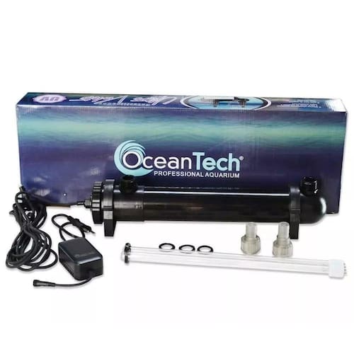 O Filtro UV Ocean Tech é um sistema de esterilização UV com design altamente eficiente e compacto. Erradica eficazmente organismos prejudiciais à saúde dos peixes e elimina a aparência esverdeada da água, resultante do excesso de algas. O Filtro UV Ocean Tech é recomendado para uso em aquários de água doce e salgada, lagos e fontes. Podese conectálo a uma bomba submersa ou também a um filtro Canister.