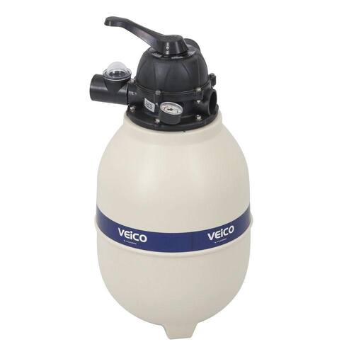 FILTRO PARA PISCINA ATÉ 30.000 L, tanque rotomoldado, mais resistente.Possui válvula seletora de 6 funções, conexões 50mm e manômetro. Válvula do Filtro para Piscina Veico é parafusada com inox.Indicado para motobomba 1/3 Veico Pro - não inclusa.Vazão Nominal: 3,8m³/h. Filtra Picina de 30.000 litros em 8 horas ou 23.000 litros em 6 horasCarga de areia: 30kg não inclusaDimensões: 335mm de diâmetro, 705mm de altura total