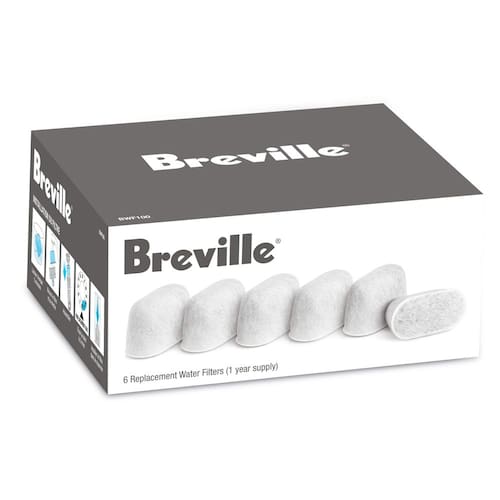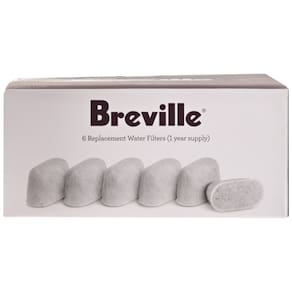 15 barFiltros de carvão Breville, pacote com 6, para uso com as máquinas de café expresso Breville Barista Pro (BES878), Breville Barista Express (BES870) e Breville Infuser (BES840) - Compatíveis com as máquinas de café expresso Breville BES900XL, BES860XL, BES840XL e as máquinas de café BKC600XL e BKC700XL - Carvão vegetal remove sabores e odores causados por impurezas na água da torneira - Contém um ano de suprimento de filtros, para troca recomendada a cada 2 meses