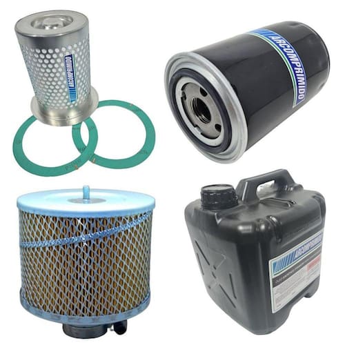 Kit de Filtros e 20L de Óleo Sintético Similares para Compressor Techto Platinum TB20. O kit contém: * 01 Filtro Separador de Ar e Óleo * 01 Filtro de Óleo * 01 filtro de Ar * 20L de Óleo Sintético 8000hrs