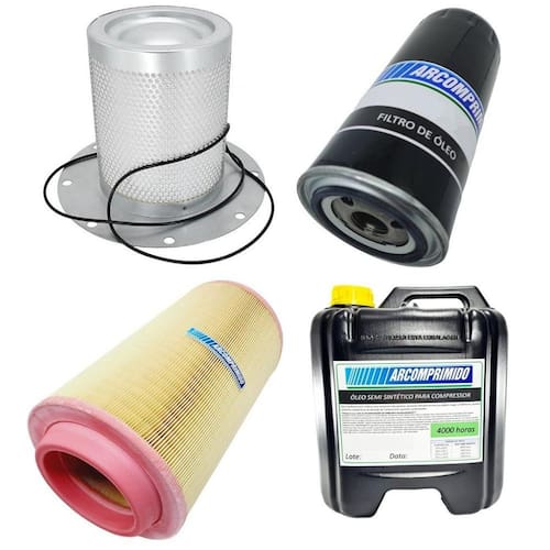Kit de Filtros e Óleo Lubrificante Similares para Compressor Chicago Pneumatic S-16/100. O kit contém: