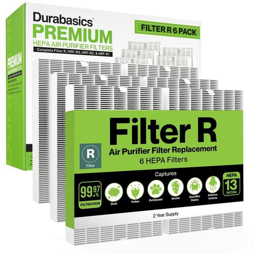 Substituições de corte preciso para filtros Honeywell(R) R, HRF-R3, HRF-R2 e HRF-R1 Feitos de material HEPA 13, estes filtros são compatíveis com os modelos de purificador de ar abaixo: Honeywell HPA090, HPA094, HPA100, HPA101, HPA104, HPA105, HPA105-TGT, HPA106, HPA200, HPA201, HPA202, HPA204, HPA250B, HPA300, HPA304, HPA300, HPA0, HPA5000, HPA5300, HPA5300B e HPA8350B. Material HEPA 13 Construído com os mais altos padrões com materiais HEPA 13 para filtros de maior duração e maior desempenho. Economize dinheiro e reduza eletricidade Reduza sua conta de eletricidade substituindo os filtros de ar HEPA velhos e entupidos da Honeywell que fazem com que ele trabalhe mais do que o necessário. Conteúdo da embalagem: 6 filtros purificadores de ar com classificação HEPA-13 compatíveis com o filtro Honeywell(R) R, HRF-R3, HRF-R2 e HRF-R1. Isenção de responsabilidade: Este é um produto genérico projetado e projetado pela Durabasics. Não somos afiliados, patrocinados ou associados à Honeywell. Este não é um produto Autêntico Honeywell e não é coberto por nenhuma garantia do fabricante Honeywell. Os nomes de marcas e logotipos da Honeywell são marcas registradas de seus respectivos proprietários. Qualquer uso do nome da marca ou designação de modelo para este produto é feito exclusivamente para fins de demonstração de compatibilidade. A Durabasics oferece produtos com desconto que fornecem excelente valor em produtos de qualidade premium, mas não podem usar materiais idênticos à Honeywell e, portanto, não podem garantir resultados idênticos, incluindo com relação à qualidade da filtragem (por exemplo, queda de pressão, taxa de fluxo de ar e eficiência) ou durabilidade. A embalagem Durabasics pode variar. - 6 filtros compatíveis com filtro de purificador de ar Honeywell R - 6 substituições premium para Honeywell True HEPA, filtros de ar Honeywell, HRF-R3, HRF-R2 e HRF-R1 para os purificadores de ar abaixo Honeywell, incluindo o filtro purificador de ar Honeywell HPA300 - Substituições para filtros Honeywell HPA300 e mais – Serve para purificadores de ar Honeywell HEPA e purificadores de ar Honeywell modelos HPA090, HPA094, HPA100, HPA101, HPA104, HPA105, HPA105-TGT, HPA106, HPA200, HPA201, HPA201, HPA201, HPA201, HPA201, HPA201, HPA201, HPA201PA202, HPA204, HPA250B, HPA300, HPA304, HPA3000, HPA5000, HPA5300, HPA5300B e HPA8350B. - Material HEPA 13 – Nossas substituições para filtros Honeywell (apenas filtro R) são construídas com material premium HEPA 13/MERV 17 para melhorar muito a qualidade geral do ar do seu espaço de vida - Pacote de substituição para seus purificadores de filtro de ar Honeywell da série HPA – Nossos filtros de substituição para o seu filtro purificador de ar Honeywell medem 25,9 cm x 16,5 cm x 4 cm - Economize dinheiro com os filtros Durabasics HEPA para o seu purificador de ar Honeywell - reduza sua conta de eletricidade substituindo o filtro Honeywell R entupido existente no seu purificador Honeywell, fazendo com que ele trabalhe mais do que o necessário, com um novo filtro de substituição compatível Honeywell HPA300