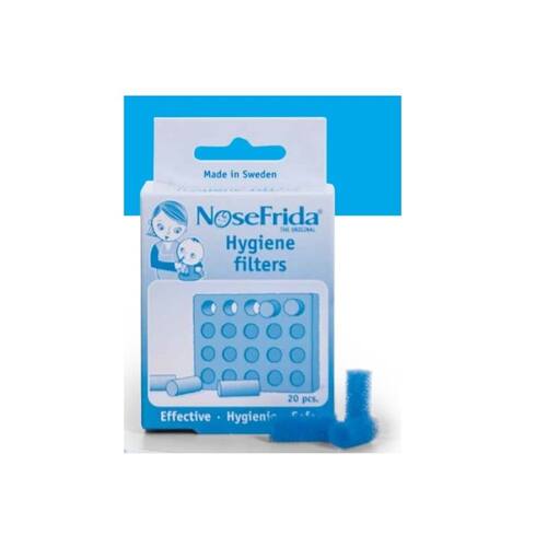 Filtros para aspirador nasal nosefrida - 20 filtros o filtro para aspirador nasal nosefrida é descartável e higiênico. Recomenda-se a troca após o uso para assegurar a eficácia do produto e a não transmissão de bactérias. Marca: nosefrida descrição: filtro para aspirador nasal nosefrida dimensões da embalagem axlxp : 3x7x10 cm peso aproximado do produto g : 12g composição do produto: plástico poliuretano