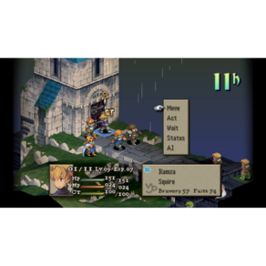 Ivalice, um reino abençoado pela luz dos deuses e governado por Two-headed Lion. Um ano após sua derrota para Ordallia na guerra conhecida como Fifty Years' War, o rei sucumbiu à doença, deixando um mero menino de dois anos para assumir o trono. Aquele que fosse nomeado regente seria o verdadeiro governante, e assim surgiram dois candidatos rivais: os duques Goltanna e Larg, cujos atos durante a guerra concederam-lhes grande renome. Goltanna, o Black Lion, e Larg, o White Lion, estavam destinados a se enfrentar, causando um conflito que viria a ser conhecido como War of the Lions. É nesse contexto que aparece, Ramza, o terceiro filho da House Beoulve, uma das principais famílias militares, e seu amigo de infância Delita, um plebeu criado entre os nobres. Ao se aventurarem em busca de um rumo nessa era tumultuosa, uma poderosa corrente os leva cada vez mais em direção a um abismo. • Combate - Lidere sua equipe em confrontos emocionantes em que o posicionamento estratégico e o planejamento antecipado determinam o resultado. Use o terreno diverso de campos de batalha em 3D a seu favor e manipule habilmente a ordem dos turnos. Com isso, a vitória estará em suas mãos. • Crescimento dos personagens e personalização - Combine uma vasta variedade de Jobs e habilidades para criar suas próprias estratégias.
