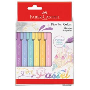 Marca: faber-castell Linha: fine pen 0.4mm Cor: tons pastel Estojo com 6 canetas bolígrafos ponta porosa Com a ponta ultrafina de 0.4mm e a tinta que não passa para o outro lado da folha, suas anotações nunca mais serão iguais. Acompanha estojo exclusivo que facilita o uso e a organização da fine pen Seus desenhos mais vivos e criativos com ótima cobertura Formulação exclusiva garante a durabilidade do produto Composição tinta: veículo aquoso, umectantes, corantes e aditivos Composição tampa e corpo: resinas termoplásticas Composição ponta: metal / resina termoplástica - pavio: fibra Armazenar em lugar seco e ventilado Evitar temperaturas acima de 45c e exposição direta aos raios solares Produto atóxico e não perecível Atenção não recomendável para crianças de até 3 três anos, por conter parte s pequena s que pode m ser engolida s ou aspirada s . Marca: Não Informado