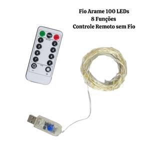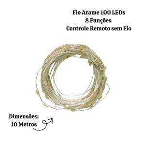 FIO ARAME 100 LEDS 8F CONTROLE REMOTO SEM FONTE WARM 10M - 25005