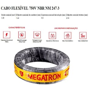Fio Cabinho Flexível Megatron 1,0 mm Rolo com 100 m Preto Código Do Produto: BT404221RF - Fabricante: Megatron