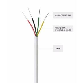 4 vias de 0,40 mm Condutor interno: Fio de Aluminio Recoberto com Banho de cobre, eletrolítico, mole Diâmetro do fio: 0,40mm Isolação Interna: Polietileno de baixa densidade multicor Isolação Externa: PVC 70º Anti-chama - Branco Embalagem: 01 Rolo com 100 metros Marca: Não Informado