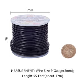 BENECREAT Fio de alumínio para esculpir artesanato Várias opções Espessura: 9G, calibre 10 Cor: Prata, cobre, ouro claro, preto Características Longa duração, não rasga Durável, mas fácil de dobrar e manter em forma Ótimo para fabricação de joias, escultura, jardinagem, etc. - ?MACIO E FLEXÍVEL?: Feito de alumínio, à prova de ferrugem e sem manchas, flexível e fácil de dobrar, pode manter bem a forma - ?Referência de tamanho?: 9G (3 mm) de espessura, 55 pés (17 m) de comprimento, mede 7 cm x 6 cm, não ocupa muito espaço - ?BOA EMBALAGEM?: Colocado em caixa personalizada para evitar danos ao envio, o eixo de plástico é ótimo para manter o fio na organização - ?COR VIBRANTE?: Cor preta, de longa duração, não é fácil de desbotar e cair, muito fácil de manipular - ?AMPLO USO?: Forte e macio para fazer joias, embrulho de pedras, contas, escultura, esqueletos de boneca, modelos de bicicleta, arranjos de floristas, jardinagem e outros projetos de fabricação de artesanato