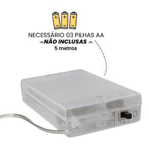 -Necessário o uso de 03 Pilhas AA (Não inclusas) -50 LEDs-Potência: 03W - 0,02A -Espaçamento dos LEDs: 10cm