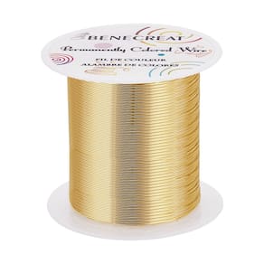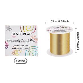 BENECREAT Fio de cobre para joias Especificação: Espessura: calibre 24/0,5 mm Comprimento: 80 m/87 jardas Cor: Ouro claro Características: Fio de cobre resistente a manchas Perfeito para fazer anéis, brincos, pulseiras e colares, joias de embrulho de arame, corrente de contas ou qualquer projeto de artesanato! - ?Flexibilidade?: O fio de cobre macio é moldável e flexível, fácil de moldar ou dobrar, boa qualidade para uso. - ?Medida?: O fio da joia tem 0,5 mm/calibre 24 de diâmetro, 80 m/87 jardas de comprimento por carretel. - ?Colorido permanente?: Cor dourada clara; revestimento resistente a manchas, colorido permanentemente esmaltado. - ?Uso amplo?: Ótimo para fazer componentes de joias, como corrente de malha, corrente com contas, argolas, fones de ouvido e pingentes embrulhados em arame. - ?Pacote de carretel conveniente?: Este fio de artesanato é embalado com um carretel resistente que é conveniente para retirar o fio de metal e mantê-lo organizado sem bagunça.