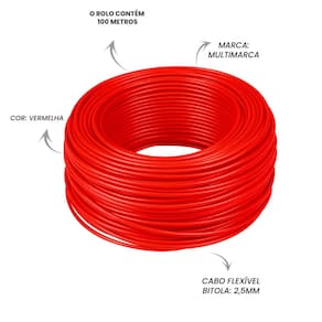 Contém: 1 rolo de Fio Elétrico Cabo Flexível 2,5mm 100 Metros C/inmetro Vermelho.