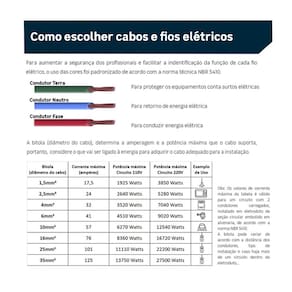 Indicação: Indicado para instalações elétricas residenciais e comerciais, como circuitos de iluminação, tomadas e outros dispositivos elétricos.
