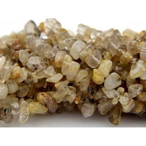 Fio Cristal Rutilado Cascalho Rolado Extra com furos Laser, Pedra Natural roladas são tipos pedras formadas em maquinas de rola e polidas, tipo cascalho rolado
