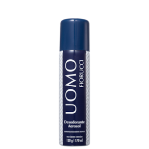 Desodorante masculino em aerossol. Fiorucci Uomo Desodorante traz proteção duradoura enquanto envolve o homem em um aroma leve. Ele neutraliza o odor corporal sem provocar irritações na pele.