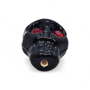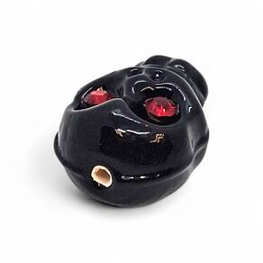 Significado e Força: A caveira preta representa a sabedoria ancestral, a justiça dos Exus e PombaGiras e a firmeza dos que trabalham na linha das almas. Os olhos vermelhos simbolizam o fogo do espiritual, a vigilância e a proteção contra inimigos ocultos.