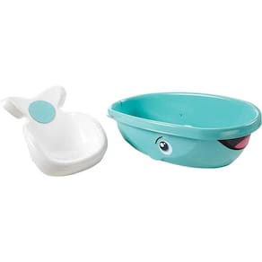 Esta adorável banheira de baleia vem com assento confortável, com contornos, e apoio para cabeça de espuma macia ? tudo para manter a criança confortável enquanto brinca e fica limpinha.
