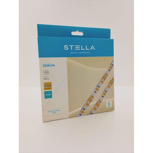 Observações Utilize a fita apenas com acessórios e fonte Stella. A não observância deste item invalida a garantia. Permite dimerização utilizando fonte dimerizável Stella. A instalação deve ser feita por profissional qualificado e apenas em superfícies limpas e secas. A fita deve ser usada totalmente desenrolada e só pode ser cortada nas devidas marcações (a cada 5cm). * Utilize uma fonte 12V Stella a cada cinco metros de fita, a fim de evitar perdas no fluxo luminoso.