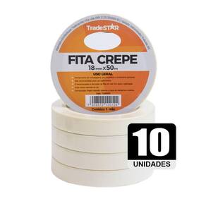 Kit com 10 Unidades Rolos Fita Adesiva Crepe Papel FITA ADESIVA DE 1ª LINHA, EMBALADA INDIVIDUALMENTE. Fabricada com materiais duráveis e resistentes, esta fita é perfeita para diversas aplicações, como pinturas, vedação, empacotamento e muito mais. Com um adesivo forte e de fácil remoção, a Fita Crepe p/ Uso Geral 18mm x 50m garante um acabamento perfeito sem danificar a superfície. Características Gerais: - Facilidade de aplicação - Remoção limpa - a fita sai da superfície em um único pedaço sem deixar resíduos - Conformidade a superfícies irregulares - Desenrolamento leve - Não deve ser utilizada para pintura automotiva. Deve ser removida em até 24 horas após a aplicação. - Marca: TradeStar - Rolo: 18mm X 50m - Cor: Branca - Material Adesivo à base de resina e borracha