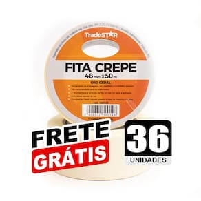 Kit com 36 Unidades Rolos Fita Adesiva Crepe Papel FITA ADESIVA DE 1ª LINHA, EMBALADA INDIVIDUALMENTE. Fabricada com materiais duráveis e resistentes, esta fita é perfeita para diversas aplicações, como pinturas, vedação, empacotamento e muito mais. Com um adesivo forte e de fácil remoção, a Fita Crepe p/ Uso Geral 48mm x 50m garante um acabamento perfeito sem danificar a superfície. Características Gerais: Facilidade de aplicação Remoção limpa a fita sai da superfície em um único pedaço sem deixar resíduos Conformidade a superfícies irregulares Desenrolamento leve Não deve ser utilizada para pintura automotiva. Deve ser removida em até 24 horas após a aplicação. Marca: TradeStar Rolo: 48mm X 50m Cor: Branca Material Adesivo à base de resina e borracha