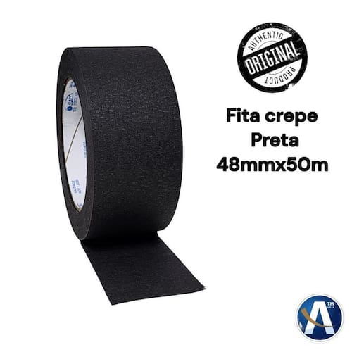 Dorso: Papel Crepe 40g/m2 tratado à base dágua Adesivo: Base borracha e resinas sintéticas Cor: Preto.