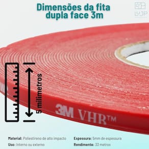 A Fita Dupla Face 3M tm VHB tm oferece adesão permanente, fixação forte e acabamento limpo em superfícies como metal, vidro, acrílico, madeira e plástico. Com adesivo acrílico de alta resistência, substitui parafusos, rebites e soldas, garantindo praticidade e durabilidade em projetos industriais, automotivos, construção, decoração e DIY.