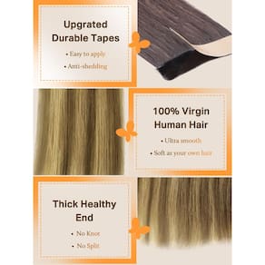 3. Conjunto de cabelo: 2,5 g por peça, 50 g por pacote. Fita dupla face de 3,8 cm de largura. Recomendamos 1-2 pacotes para cabelos grossos, 2-3 pacotes para cabelos finos.