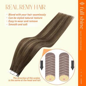Extensões de cabelo Ombre Balayage Tape in Hair é o símbolo da Full Shine Hair. Se você está cansado da cor pura básica, escolha a cor Ombre Balayage é uma escolha correta, experimente! Detalhes do produto: Material do cabelo: cabelo humano real Textura: Liso e tem uma onda natural quando molhado ou deixado para secar ao ar livre ou difuso. Fita: Fita branca americana Tamanho da fita: 0,8 cm x 4 cm Conjunto: 2,5 g/peça, 20 peças/pacote, 50 g/pacote Aviso antes de fazer o pedido 1. Quantidade necessária: 150-250 gramas, 3-5 pacotes são recomendados para toda a cabeça. Se você tiver cabelo curto, reduza 1 pacote. 2. Sobre o estilo: nossas extensões de cabelo com fita humana são exatamente como o seu próprio cabelo e podem ser modeladas, enroladas ou alisadas conforme desejado. O DIY diário reduzirá a vida útil das fitas, use mais nutrição. 3. Sobre a cor: nossa fita de cabelo pode ser mais escura, mas não mais clara. Sempre teste um pequeno pedaço quando você tingir. 4. Sobre a lavagem: lave seu próprio cabelo sem condicionador quando for a primeira vez para aplicar em . Não lave o cabelo pelo menos 72 horas após a fixação, a lavagem diária não é boa para suas extensões. Use xampu e condicionador sem sulfato no cabelo 5. Cuidados: sugerimos que você use o óleo para reviver o cabelo seco; dormir com uma touca de seda ou compre uma fronha de seda para proteger o cabelo. 6. Sobre o uso: O cabelo pode ser reaproveitado com fita de substituição. Sugerimos ajustar a fita a cada 2-5 semanas para manter o cabelo bem. Encontre beleza e confiança com Full Shine Hair. - Sobre a instalação: o sanduíche é uma boa maneira, as duas peças devem ser alinhadas, não adicione muito cabelo no meio, ou ele cairá; você pode cortar suavemente as fitas uma vez com um alisador de cabelo, não aqueça a fita usando temperaturas excessivamente altas - Aparência natural: extensões de cabelo com fita adesiva podem adicionar estilo e volume ao seu cabelo com resultados naturais e discretos; ao escolher a cor que se adapta ao seu tom de cabelo, você pode desfrutar de cabelos mais cheios sem que ninguém perceba que você está usando extensões de cabelo - Disponível em vários tons: extensões de cabelo humano com fita adesiva oferecem muitos tons diferentes, balayage e ombré e muitas cores puras; você também pode criar sua mistura preferida usando dois ou três tons diferentes para obter um visual natural - Dupla face, invisível e substituível: como eles são muito leves e pegajosos o suficiente, eles se unem bem ao seu cabelo real sem qualquer desconforto. O uso adequado não danificará seu couro cabeludo e não causará nenhum desconforto. Você pode usar um removedor de adesivo ao remover - Como desembaraçar: nunca durma com extensões de cabelo molhado; sempre certifique-se de que o cabelo esteja seco e puxado para cima; use um pente de dentes largos nas pontas do cabelo, alise o cabelo, aplique azeite de oliva. Também pode ser utilizado com spray desembaraçante - Mais opções de penteado: se você quiser experimentar um novo visual, as extensões de cabelo com fita Full Shine podem ajudá-lo a alcançar seus objetivos de cabelo desejados; já que são cabelos humanos reais, que podem ser lavados, fortalecidos e enrolados usando um alisador - Uso recomendado: para cabelos grossos, 1-2 pacotes para aumentar o peso e 3-4 pacotes para aumentar o comprimento; para cabelos finos, 3-4 pacotes para aumentar o peso e 1-2 pacotes para aumentar o comprimento; você só precisará visitar o salão a cada 3 a 6 semanas após as extensões estarem em - Menos manutenção e antes da instalação: ao contrário de outros métodos, as extensões de cabelo com fita adesiva exigem menos manutenção; lave sua fita em extensões e seque com secador, não use condicionador ou óleo antes da instalação; é melhor você ir a um salão para instalar - Após a instalação: não lave a fita adesiva no cabelo em 48 horas, sugerimos que você use um condicionador melhor para cuidados profundos; nunca coloque o condicionador nas raízes do seu cabelo de qualquer maneira; isso pode fazer com que suas extensões de cabelo escorreguem