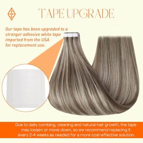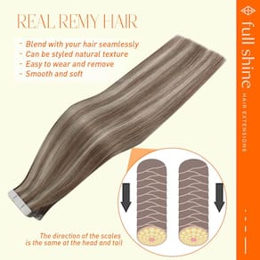 Extensões de cabelo Ombre Balayage Tape in Hair é o símbolo da Full Shine Hair. Se você está cansado da cor pura básica, escolha a cor Ombre Balayage é uma escolha correta, experimente! Detalhes do produto: Material do cabelo: cabelo humano real Textura: Liso e tem uma onda natural quando molhado ou deixado para secar ao ar livre ou difuso. Fita: Fita branca americana Tamanho da fita: 0,8 cm x 4 cm Conjunto: 2,5 g/peça, 20 peças/pacote, 50 g/pacote Aviso antes de fazer o pedido 1. Quantidade necessária: 150-250 gramas, 3-5 pacotes são recomendados para toda a cabeça. Se você tiver cabelo curto, reduza 1 pacote. 2. Sobre o estilo: nossas extensões de cabelo com fita humana são exatamente como o seu próprio cabelo e podem ser modeladas, enroladas ou alisadas conforme desejado. O DIY diário reduzirá a vida útil das fitas, use mais nutrição. 3. Sobre a cor: nossa fita de cabelo pode ser mais escura, mas não mais clara. Sempre teste um pequeno pedaço quando você tingir. 4. Sobre a lavagem: lave seu próprio cabelo sem condicionador quando for a primeira vez para aplicar em . Não lave o cabelo pelo menos 72 horas após a fixação, a lavagem diária não é boa para suas extensões. Use xampu e condicionador sem sulfato no cabelo 5. Cuidados: sugerimos que você use o óleo para reviver o cabelo seco; dormir com uma touca de seda ou compre uma fronha de seda para proteger o cabelo. 6. Sobre o uso: O cabelo pode ser reaproveitado com fita de substituição. Sugerimos ajustar a fita a cada 2-5 semanas para manter o cabelo bem. Encontre beleza e confiança com Full Shine Hair. - Sobre a instalação: o sanduíche é uma boa maneira, as duas peças devem ser alinhadas, não adicione muito cabelo no meio, ou ele cairá; você pode cortar suavemente as fitas uma vez com um alisador de cabelo, não aqueça a fita usando temperaturas excessivamente altas - Aparência natural: extensões de cabelo com fita adesiva podem adicionar estilo e volume ao seu cabelo com resultados naturais e discretos; ao escolher a cor que se adapta ao seu tom de cabelo, você pode desfrutar de cabelos mais cheios sem que ninguém perceba que você está usando extensões de cabelo - Disponível em vários tons: extensões de cabelo humano com fita adesiva oferecem muitos tons diferentes, balayage e ombré e muitas cores puras; você também pode criar sua mistura preferida usando dois ou três tons diferentes para obter um visual natural - Dupla face, invisível e substituível: como eles são muito leves e pegajosos o suficiente, eles se unem bem ao seu cabelo real sem qualquer desconforto. O uso adequado não danificará seu couro cabeludo e não causará nenhum desconforto. Você pode usar um removedor de adesivo ao remover - Como desembaraçar: nunca durma com extensões de cabelo molhado; sempre certifique-se de que o cabelo esteja seco e puxado para cima; use um pente de dentes largos nas pontas do cabelo, alise o cabelo, aplique azeite de oliva. Também pode ser utilizado com spray desembaraçante - Mais opções de penteado: se você quiser experimentar um novo visual, as extensões de cabelo com fita Full Shine podem ajudá-lo a alcançar seus objetivos de cabelo desejados; já que são cabelos humanos reais, que podem ser lavados, fortalecidos e enrolados usando um alisador - Uso recomendado: para cabelos grossos, 1-2 pacotes para aumentar o peso e 3-4 pacotes para aumentar o comprimento; para cabelos finos, 3-4 pacotes para aumentar o peso e 1-2 pacotes para aumentar o comprimento; você só precisará visitar o salão a cada 3 a 6 semanas após as extensões estarem em - Menos manutenção e antes da instalação: ao contrário de outros métodos, as extensões de cabelo com fita adesiva exigem menos manutenção; lave sua fita em extensões e seque com secador, não use condicionador ou óleo antes da instalação; é melhor você ir a um salão para instalar - Após a instalação: não lave a fita adesiva no cabelo em 48 horas, sugerimos que você use um condicionador melhor para cuidados profundos; nunca coloque o condicionador nas raízes do seu cabelo de qualquer maneira; isso pode fazer com que suas extensões de cabelo escorreguem