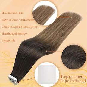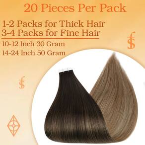 Extensões de cabelo Ombre Balayage Tape in Hair é o símbolo da Full Shine Hair. Se você está cansado da cor pura básica, escolha a cor Ombre Balayage é uma escolha correta, experimente! Detalhes do produto: Material do cabelo: cabelo humano real Textura: Liso e tem uma onda natural quando molhado ou deixado para secar ao ar livre ou difuso. Fita: Fita branca americana Tamanho da fita: 0,8 cm x 4 cm Conjunto: 2,5 g/peça, 20 peças/pacote, 50 g/pacote Aviso antes de fazer o pedido 1. Quantidade necessária: 150-250 gramas, 3-5 pacotes são recomendados para toda a cabeça. Se você tiver cabelo curto, reduza 1 pacote. 2. Sobre o estilo: nossas extensões de cabelo com fita humana são exatamente como o seu próprio cabelo e podem ser modeladas, enroladas ou alisadas conforme desejado. O DIY diário reduzirá a vida útil das fitas, use mais nutrição. 3. Sobre a cor: nossa fita de cabelo pode ser mais escura, mas não mais clara. Sempre teste um pequeno pedaço quando você tingir. 4. Sobre a lavagem: lave seu próprio cabelo sem condicionador quando for a primeira vez para aplicar em . Não lave o cabelo pelo menos 72 horas após a fixação, a lavagem diária não é boa para suas extensões. Use xampu e condicionador sem sulfato no cabelo 5. Cuidados: sugerimos que você use o óleo para reviver o cabelo seco; dormir com uma touca de seda ou compre uma fronha de seda para proteger o cabelo. 6. Sobre o uso: O cabelo pode ser reaproveitado com fita de substituição. Sugerimos ajustar a fita a cada 2-5 semanas para manter o cabelo bem. Encontre beleza e confiança com Full Shine Hair. - Sobre a instalação: o sanduíche é uma boa maneira, as duas peças devem ser alinhadas, não adicione muito cabelo no meio, ou ele cairá; você pode cortar suavemente as fitas uma vez com um alisador de cabelo, não aqueça a fita usando temperaturas excessivamente altas - Aparência natural: extensões de cabelo com fita adesiva podem adicionar estilo e volume ao seu cabelo com resultados naturais e discretos; ao escolher a cor que se adapta ao seu tom de cabelo, você pode desfrutar de cabelos mais cheios sem que ninguém perceba que você está usando extensões de cabelo - Disponível em vários tons: extensões de cabelo humano com fita adesiva oferecem muitos tons diferentes, balayage e ombré e muitas cores puras; você também pode criar sua mistura preferida usando dois ou três tons diferentes para obter um visual natural - Dupla face, invisível e substituível: como eles são muito leves e pegajosos o suficiente, eles se unem bem ao seu cabelo real sem qualquer desconforto. O uso adequado não danificará seu couro cabeludo e não causará nenhum desconforto. Você pode usar um removedor de adesivo ao remover - Como desembaraçar: nunca durma com extensões de cabelo molhado; sempre certifique-se de que o cabelo esteja seco e puxado para cima; use um pente de dentes largos nas pontas do cabelo, alise o cabelo, aplique azeite de oliva. Também pode ser utilizado com spray desembaraçante - Mais opções de penteado: se você quiser experimentar um novo visual, as extensões de cabelo com fita Full Shine podem ajudá-lo a alcançar seus objetivos de cabelo desejados; já que são cabelos humanos reais, que podem ser lavados, fortalecidos e enrolados usando um alisador - Uso recomendado: para cabelos grossos, 1-2 pacotes para aumentar o peso e 3-4 pacotes para aumentar o comprimento; para cabelos finos, 3-4 pacotes para aumentar o peso e 1-2 pacotes para aumentar o comprimento; você só precisará visitar o salão a cada 3 a 6 semanas após as extensões estarem em - Menos manutenção e antes da instalação: ao contrário de outros métodos, as extensões de cabelo com fita adesiva exigem menos manutenção; lave sua fita em extensões e seque com secador, não use condicionador ou óleo antes da instalação; é melhor você ir a um salão para instalar - Após a instalação: não lave a fita adesiva no cabelo em 48 horas, sugerimos que você use um condicionador melhor para cuidados profundos; nunca coloque o condicionador nas raízes do seu cabelo de qualquer maneira; isso pode fazer com que suas extensões de cabelo escorreguem