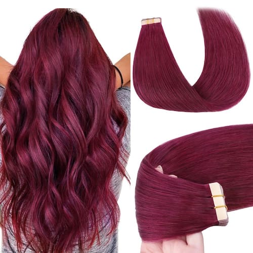 Fita GOO GOO para extensões de cabelo, cabelo humano, cor de vinho, 20 polegadas, 50 g, 20 unidades, pontas grossas, retas, sem costura, fita invisível em extensões de cabelo, cabelo humano — Qualidade premium: desfrute de extensões de cabelo humano Remy de grau 9A. Mantém a ultramaciedade, o brilho brilhante e uma textura sedosa. Livre de emaranhados com o cuidado adequado, oferecendo uma experiência natural e confortável. Dura até quatro meses com a manutenção correta — Ótima para volume e plenitude: cada fita de 1,5" de largura no pacote de extensão inclui 20 peças. Comprimentos disponíveis: 10"-26". Pesos: 10" (30g), 12" (40g), 14"-24" (50g), 26" (60g). Use 1 pacote para realces, 2 a 3 pacotes para volume e 4 a 5 pacotes para a cabeça cheia. Cores e estilos modernos: escolha entre uma variedade de cores populares, incluindo balayage e tons sólidos, do ombre claro ao loiro platinado. Pode ser tingido, estilizado termicamente e enrolado (abaixo de 250° F). Adequado para qualquer ocasião, desde casamentos até uso diário - Fita invisível: equipada com fita adesiva invisível, hipoalergênica e de alta resistência. Durável e seguro, dura de quatro a seis semanas. Leve, confortável e fácil de instalar e remover. Adere perfeitamente ao couro cabeludo - Serviço Color Match: Pequenas variações de cor podem ocorrer devido à resolução da tela e à iluminação. Se você não tiver certeza sobre a cor da extensão, compartilhe uma foto do seu cabelo conosco. Forneceremos uma combinação de cores personalizada para ajudá-lo a escolher a tonalidade ideal