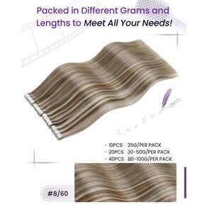 As extensões de cabelo humano LaaVoo Tape in Hair são costuradas à mão e depois presas a uma fita adesiva dupla face durável. A fita remy LaaVoo em extensões de cabelo pode ajudar você a ganhar cores volumosas ou volume exuberante rapidamente. Nossas extensões de fita são feitas de cabelo humano Remy, fita adesiva e invisível. Sem danos ao seu próprio cabelo. Macio, brilhante, livre de queda e emaranhamento. Você pode colocar seu cabelo em dois pedaços de fita. Fácil de instalar e remover. É sem costura e invisível, ninguém sabe que você está usando cola em extensões de cabelo. Especificações: Tipo de extensões de cabelo: fita na extensão do cabelo Qualidade: Remy cabelo humano real Quantidade: 20 peças (4 cm x 0,8 cm) por pacote, 40.6-61.0 cm todos são 50g/conjunto Textura do cabelo: Liso Como aplicar 1. Lave o cabelo: lave e seque o cabelo completamente antes de começar. 2. Reúna uma parte do seu cabelo: Esta seção de cabelo será colocada entre duas extensões. É importante que a "fita" adesiva na extensão superior toque a da extensão inferior, para que as duas fiquem juntas. 3. Prenda a extensão: faça duas tiras de extensão de fita coladas com uma parte do seu próprio cabelo entre elas. Observe que não coloque as tramas muito perto das bordas do seu couro cabeludo. 4. Certifique-se de selar a fita com uma chapinha para máxima aderência. Dicas quentes 1. Lembre-se de não lavar o cabelo dentro de 48 horas após aplicar extensões de cabelo com fita. 2. Escolha um xampu suave para hidratar seu cabelo. Um condicionador é essencial para cuidar do cabelo, mas não faça muito com ele. 3. A vida útil da fita de cabelo depende muito da forma como você o mantém. Quanto mais cuidadosamente você tratá-lo, mais tempo ele vai durar. A LaaVoo deseja que você seja única, bonita e confiante todos os dias! - Leve e invisível: fita LaaVoo em extensões de cabelo humano combina com o seu cabelo, proporcionando conforto com um design leve. A LaaVoo oferece uma aparência natural devido ao seu delicado equilíbrio de peso e cobertura - Cabelo humano real: a fita de cabelo humano LaaVoo em extensões é meticulosamente trabalhada a partir de cabelo humano real. Nosso exclusivo processo de tratamento sem ácido garante a longevidade das extensões, mantendo-as saudáveis, brilhantes e em excelentes condições. Oferecendo 40 peças por pacote, recomendamos o uso de 1 a 2 pacotes para uma transformação completa da cabeça - Versatilidade no estilo: com fita de extensão de cabelo LaaVoo dentro, a versatilidade do estilo está ao seu alcance. Disponível em e comprimentos, nossas extensões podem ser estilizadas para criar visuais diferentes, desde o uso diário até ocasiões especiais; eles fazem a transição sem esforço de cabelo curto ou fino para mechas volumosas e longas para uma transformação completa do cabelo que grita natural - Fitas de retenção: não se preocupe com as fitas escorregando! Utilizamos cola branca americana profissional para boa aderência. Cada pacote de nossa fita preta em extensões de cabelo humano real inclui fitas de substituição, permitindo um processo fácil de instalação e remoção, requer apenas manutenção de rotina simples. A reutilização também é possível com nossas extensões - Você precisa saber: alertamos pessoas com cabelos muito finos e propensos a quebras ou couro cabeludo sensível, pois o produto pode não ser adequado para fita LaaVoo em extensões de cabelo humano. Por favor, entenda que as diferenças de cor são inevitáveis devido à resolução da tela e iluminação
