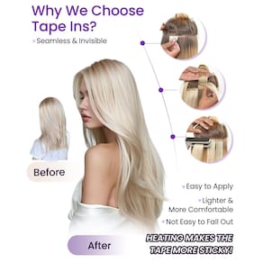 - Hold-Tapes: Não se preocupe com as fitas escorregando! Utilizamos cola branca americana profissional para uma boa adesão. Cada pacote de nossa fita em extensões de cabelo humano inclui fitas de reposição, permitindo um processo fácil de instalação e remoção, exigindo apenas uma simples manutenção de rotina. A reutilização também é possível com nossas extensões
