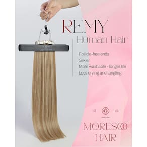 1. As extensões de cabelo com fita Moresoo são fáceis de usar e muito discretas. Eles se misturam perfeitamente com o seu cabelo sentados no seu couro cabeludo. Sua invisibilidade ajuda a garantir que ninguém perceba que você os consertou, independentemente do estilo que você escolher para pentear. A fita transparente depois de instalada não pode ser detectada facilmente e você pode realizar suas atividades diárias sem se preocupar que a fita apareça. 2. A fita nas extensões é suave e muito leve, portanto, as torna 100% seguras para os cabelos frágeis, já que não exercem muita tensão sobre eles. 3. Rápido e fácil de aplicar e manter. Extensões de cabelo com fita adesiva é a escolha perfeita para qualquer mulher ocupada que tenha pouco tempo para fazer o cabelo. É rápido e muito fácil de consertar, além de permitir o estilo de várias maneiras. 4. As fitas podem ser substituídas É comum que as fitas sejam acidentalmente danificadas de várias maneiras quando a fita nas extensões de cabelo está sendo removida. No entanto, você não precisa se preocupar, pois pode substituí-los por fitas de dupla face e de alta qualidade. Isso ajuda muito a prolongar a vida útil das extensões de cabelo humano. 5. Fita de alta qualidade Extensões de cabelo Moresoo Tape feitas de fita branca americana de alta qualidade para maior vida útil e maior adesão. Cuidados cuidadosos prolongam a vida útil para 2 a 18 meses. - Qualidade do cabelo: cabelo humano Remy, cola branca importada. As extensões de cabelo Moresoo são atualizadas em qualidade; usando cabelo real Remy, que é mais lavável e pode ser utilizado por mais tempo; a cola branca importada é firme e mais fácil de remover - Especificações: 16-22 polegadas, 20 peças, 50 gramas/pacote. 2-3 pacotes aumentam a espessura; 3-4 pacotes aumentam o comprimento. Com o mesmo peso, a espessura ficará mais fina com o comprimento - Sobre o estilo: as extensões de cabelo Moresoo suportam alisamento e ondulação; a temperatura é controlada abaixo de 180°C; ao pentear uma única peça, a temperatura não deve exceder 150 °C, uma temperatura muito alta pode causar descoloração - Locais adequados: As extensões de cabelo com fita Moresoo são adequadas para qualquer ocasião, podem encher seu cabelo em um curto espaço de tempo. Adequado para casamentos, festas, festivais e atividades comunitárias. A cor adiciona destaques à maquiagem diária - Boa experiência: a Moresoo oferece respostas e soluções de problemas antes e depois das vendas. Não importa o que você precisa, apenas vamos saber