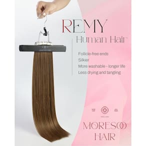 1.Moresoo Tape in hair extensions are easy to wear and very discreet. They seamlessly blend with your hair by sitting flat against your scalp. Their invisibility aids in ensuring that nobody notices that you have fixed them regardless of whichever style you choose to do your hair. The transparent tape once installed cannot be detected easily and you can go about your daily activities without worrying that the tape will show. 2.Tape in extensions is gentle and very light hence make them 100% safe for the fragile hair since they do not exert too much tension on them. 3. Quick and easy to apply and maintain. Tape in hair extensions is the perfect choice for any busy woman who has little time to make her hair. It is quick and very easy to fix them as well as allows for styling in various ways. 4.Tapes can be replaced It is common for the tapes to accidentally get damaged in various ways when the tape in hair extensions are being removed. However, you do not have to worry for you can replace them with new quality and double-sided tapes. This goes a long way in extending your tape in human hair extensions’ life. 5.High quality tape Moresoo Tape Hair Extensions Made of high quality American white Tape for longer life and greater adhesion.Careful care extends the life span to 2-18 months. - Qualidade do cabelo: cabelo humano Remy, cola branca importada. As extensões de cabelo Moresoo são atualizadas em qualidade; usando cabelo real Remy, que é mais lavável e pode ser utilizado por mais tempo; a cola branca importada é firme e mais fácil de remover - Especificações: 16-22 polegadas, 20 peças, 50 gramas/pacote. 2-3 pacotes aumentam a espessura; 3-4 pacotes aumentam o comprimento. Com o mesmo peso, a espessura ficará mais fina com o comprimento - Sobre o estilo: as extensões de cabelo Moresoo suportam alisamento e ondulação; a temperatura é controlada abaixo de 180°C; ao pentear uma única peça, a temperatura não deve exceder 150 °C, uma temperatura muito alta pode causar descoloração - Locais adequados: As extensões de cabelo com fita Moresoo são adequadas para qualquer ocasião, podem encher seu cabelo em um curto espaço de tempo. Adequado para casamentos, festas, festivais e atividades comunitárias. A cor adiciona destaques à maquiagem diária - Boa experiência: a Moresoo oferece respostas e soluções de problemas antes e depois das vendas. Não importa o que você precisa, apenas vamos saber