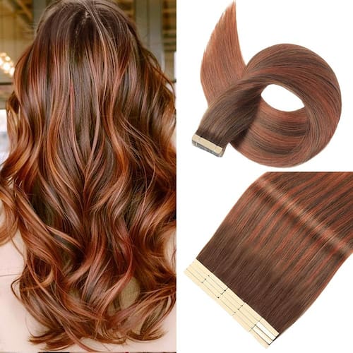 Extensões de cabelo humano balayage extensões de cabelo castanho chocolate a castanho avermelhado 45,7 cm 20 peças fita de cabelo humano liso Remy em extensões extensões de fita de trama de pele