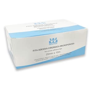 Fita Adesiva Cirúrgica Microporosa 25mm x 10m Branca - Wiltex A Fita Adesiva Cirúrgica Microporosa Wiltex é a escolha ideal para a fixação segura e confortável de curativos, bandagens e dispositivos médicos. Desenvolvida com adesivo médico antialérgico, proporciona excelente aderência sem causar irritações, sendo indicada até mesmo para peles sensíveis. Características do Produto Hipoalergênica - segura para todos os tipos de pele. Livre de látex - minimiza o risco de reações alérgicas. Não estéril - indicada para uso geral em curativos e fixações. Cor: Branca Dimensões: 25mm x 10m Composição Fabricada em tecido-não-tecido e revestida com adesivo médico em poliuretano termoplástico, garantindo fixação eficiente sem comprometer a integridade da pele. Indicações de Uso Fixação de curativos e bandagens. Fixação de cateteres e sondas. Uso hospitalar, ambulatorial e domiciliar. Condições de Armazenamento Manter em local ventilado, limpo e seco. Temperatura entre 5ºC e 40ºC. Umidade relativa inferior a 80%. Conteúdo da Embalagem Kit com 12 unidades Registro ANVISA 10150470603 A Fita Adesiva Cirúrgica Microporosa Wiltex combina qualidade, segurança e conforto, garantindo uma fixação eficaz e cuidadosa para diferentes aplicações médicas. Marca: Não Informado