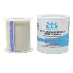 Fita Adesiva Cirúrgica Microporosa 50 mm x 10 m Branca - Wiltex Fixação segura e conforto para todos os tipos de curativos e dispositivos médicos A Fita Adesiva Cirúrgica Microporosa Wiltex é a solução ideal para fixar curativos, bandagens e dispositivos médicos de forma prática e eficaz. Desenvolvida com materiais de alta qualidade, é hipoalergênica e livre de látex, garantindo segurança e conforto até mesmo para peles sensíveis. Características do Produto: Hipoalergênica: Indicada para uso em todos os tipos de pele, minimizando o risco de irritações. Livre de Látex: Mais segurança e compatibilidade para pessoas alérgicas. Não Estéril: Ideal para aplicações gerais em ambientes clínicos e domiciliares. Composição: Produzida com tecido-não-tecido de poliuretano termoplástico, revestido com adesivo médico antialérgico sensível à pressão. Dimensões: Largura de 50 mm e comprimento de 10 m por rolo. Cor: Branco, proporcionando discrição e aparência profissional. Indicações de Uso: Fixação de curativos em feridas. Aplicação de bandagens e gazes. Fixação de dispositivos médicos, como cateteres e sondas. Benefícios: Adesão Eficiente: Fixa com firmeza sem causar desconforto ou dor na remoção. Confortável e Discreta: Ideal para uso prolongado. Armazenamento Seguro: Mantém a qualidade quando armazenada em locais ventilados e secos, com umidade relativa inferior a 80% e temperatura entre 5C e 40C. Informações Adicionais: Registro MS: 10150470603 Kit Contém: 6 unidades por embalagem Invista em uma solução prática e de alta qualidade para o cuidado com a saúde. Fita Adesiva Cirúrgica Microporosa Wiltex: segurança e conforto em cada aplicação Marca: Não Informado Ean: 17899780148121