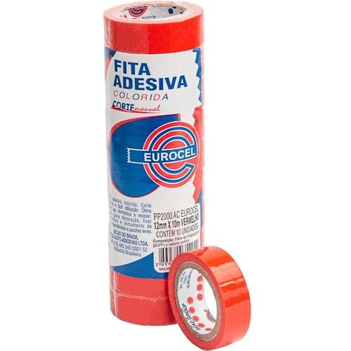 Fita indicada para pequenos trabalhos escolares, uso geral no lar e no escritório. É de fácil utilização, permite o corte manual ou com um dispensador. Possui boa aderência. Cor: Vermelha Medidas: 12mm x 10m Embalagem com 10 rolos. Ean: 7899320354954