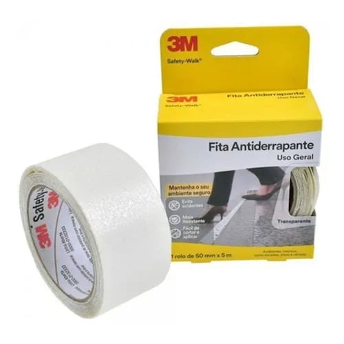 Fita Antiderrapante (Lixa) 50mm x 5m Trasparente Prova Água Área Externa - marca 3M As fitas antiderrapantes 3M podem ser fixadas em pisos, escadas, rampas ou passarelas, reduzindo o perigo de quedas e escorregões, proporcionando mais segurança. É de fácil aplicação e alta resistência. Indicações: pode ser usada em ambientes internos e externos, inclusive em locais de grande circulação. É um produto indicado para: residências, condomínios, empresas, hospitais, clubes, indústrias, supermercados, lojas e shopping centers, escadas, rampas. Embalagem contém as instruções completas de instalação e uso.