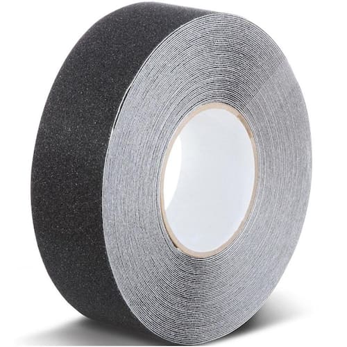 Fita adesiva antiderrapante, aplicada em pisos de edificações, barcos e outras superfícies lisas onde exista risco de quedas.