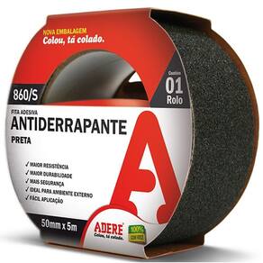 Fita adesiva antiderrapante, aplicada em pisos de edificações, barcos e outras superfícies lisas onde exista risco de quedas.