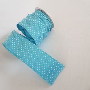 Fita Aramada Algodão Azul com Bolinhas Brancas Comp 9.14m -