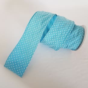Fita Decorativa aramada em algodão azul com mini bolinhas brancas, Rolo com 9,14m de comprimento X 6.50cm de largura.