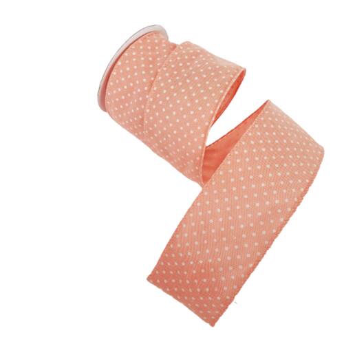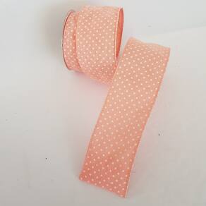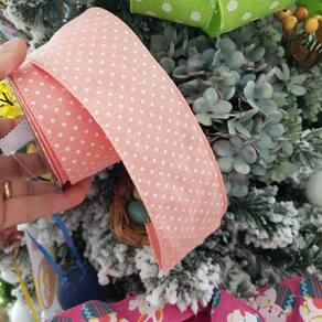 Fita Decorativa aramada em algodão rosa com mini bolinhas brancas, Rolo com 9,14m de comprimento X 6.50cm de largura.